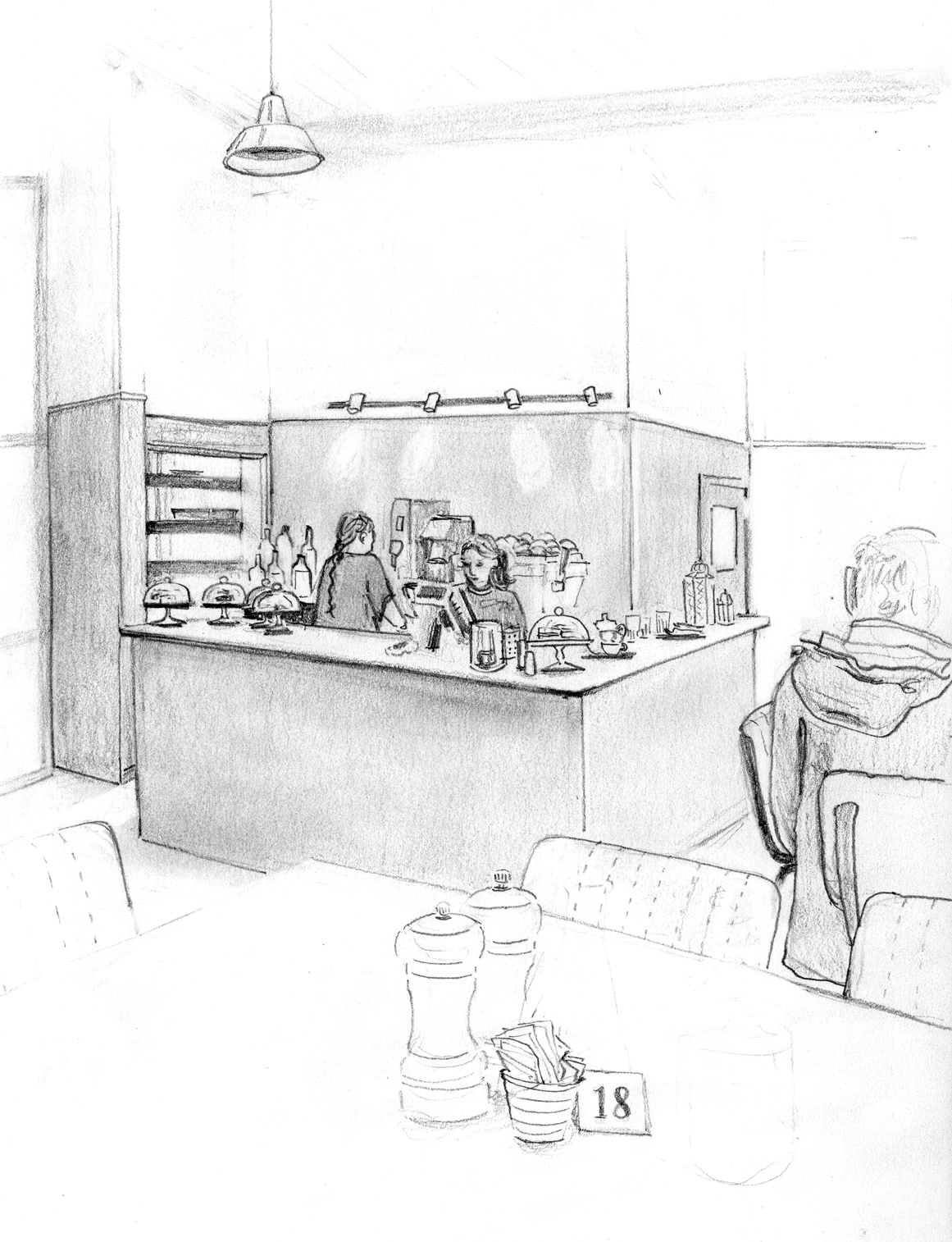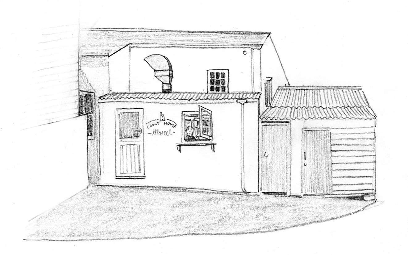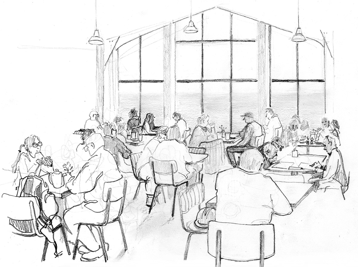 A selection of commissioned illustrations made on location at Geevor Tin Mine to show the cafe renovations and people using it.
