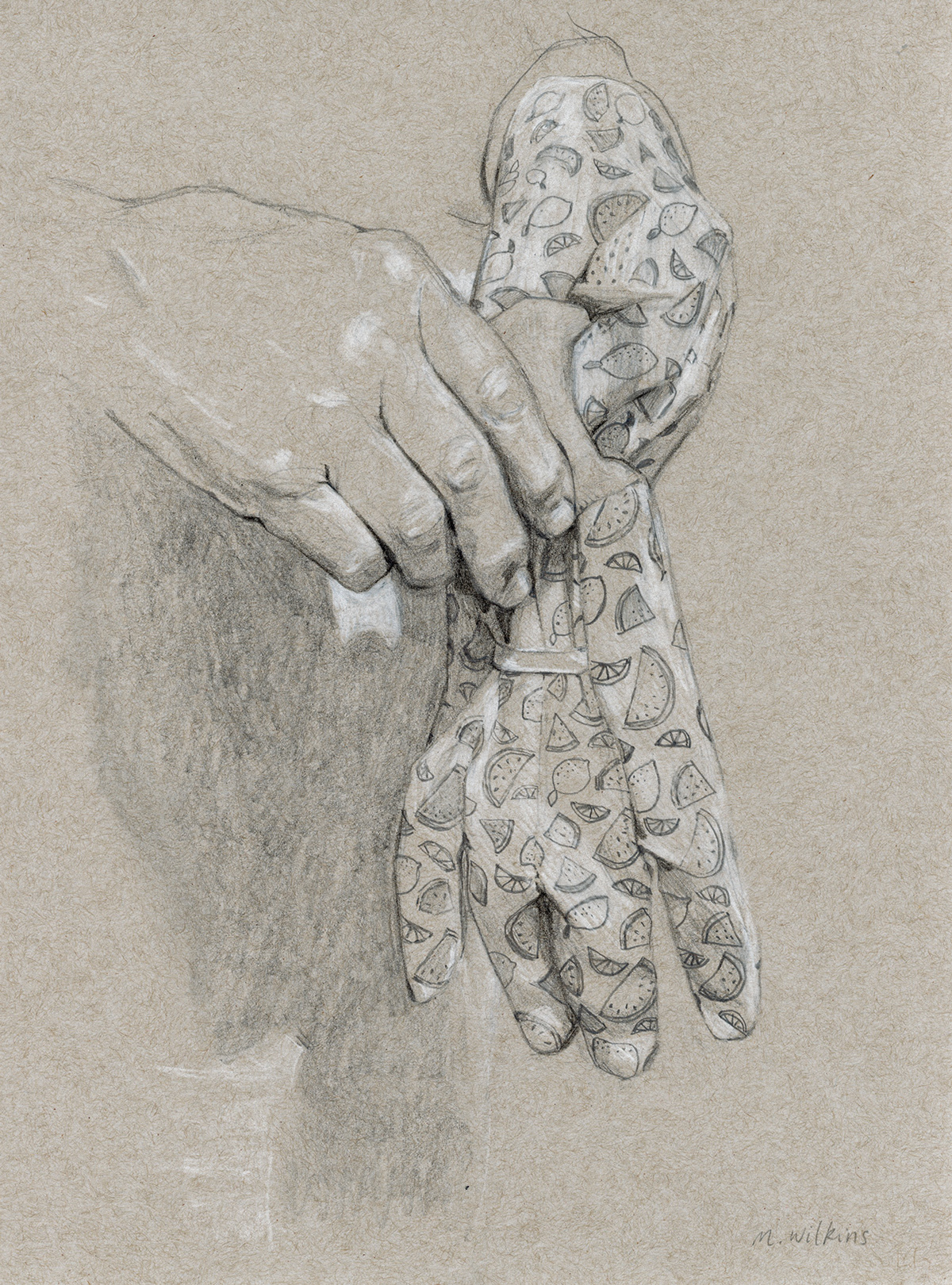 Black and white pencil drawings on grey paper. These are currently available to buy as part of the Newlyn School of Art Fundraiser.